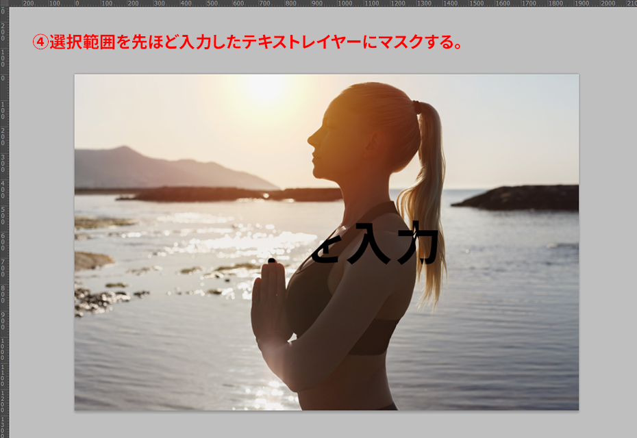 選択ツールで選択した選択範囲を、先ほど入力したテキストレイヤーにマスクします。