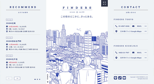 株式会社FINDERSでは「お問い合わせ情報」や「おすすめの不動産情報」が常に表示されているため、見てほしい情報へアクセスがしやすく使い勝手が良いです。
