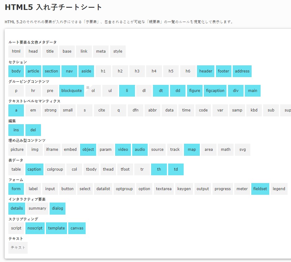 HTMLの改変がある度に更新されているので、追加されたタグの確認にも使用できます。