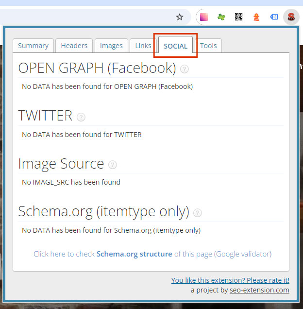 このツールの主な機能はWebページ内のメタタグを1クリックで調べられることです。ブラウザ上で表示されておらず目に見えていない情報を一覧で見られるので、ソースコードを一々開くという手間が省かれますね。