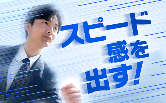 スピード感や躍動感をつけることで、例えば「この製品を使えば瞬時に◯◯が作れます!」とか「スピーディに対応します!」とか「急いでご応募ください!」といった訴えが分かりやすくなり、より伝わるデザインになりそうです。