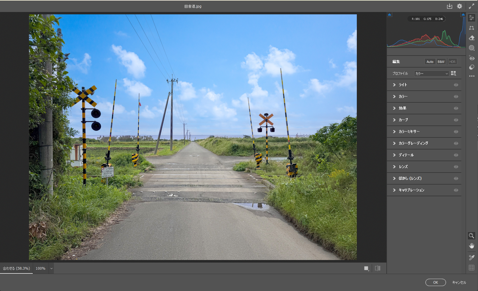 すると、パネルが表示されるので、右側の項目を調整していきながら、自分好みの色味にしていきます。