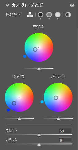 また、透明感を出すために、「カラーミキサー」や「カラーグレーディング」で青や緑を強調しました。