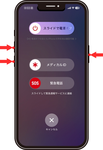 基本的にロックボタン(画面向かって右)と音量ボタン(画面向かって左)を同時に長押しする事でどの機種でもメディカルIDを呼び出す事ができます。