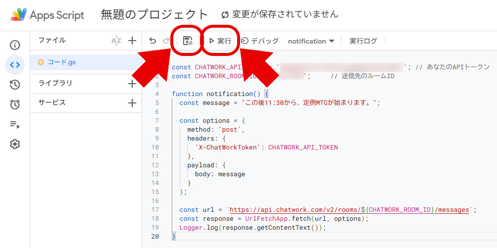 const CHATWORK_ROOM_ID = '送信先のルームID';