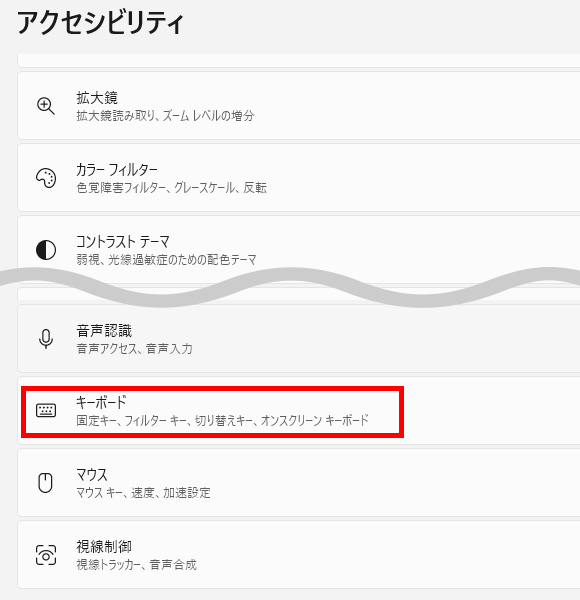 右のコンテンツ内を少しスクロールして「キーボード」をクリック。