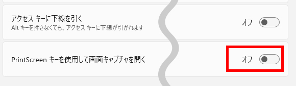 「Print Screenキーを使用して画面キャプチャを開く」がオンになっているので、オフにします。