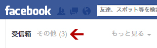 Facebookのメッセージが届くと、右のアイコンに通知が来ますよね。